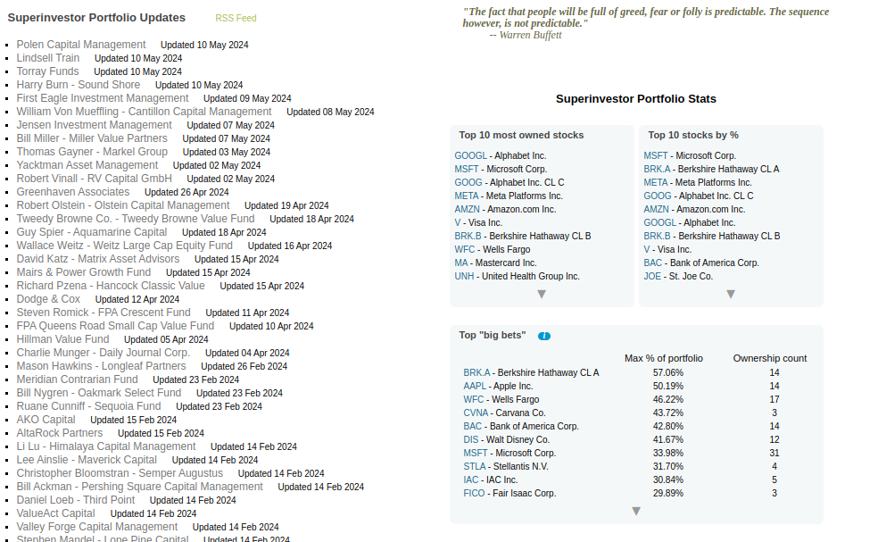 투자 거물들의 매수한 종목들을 보고 포트폴리오를 구성하는데 도움을 주는 방식으로 투자에 활용될 수 있을 것이라고 생각합니다.