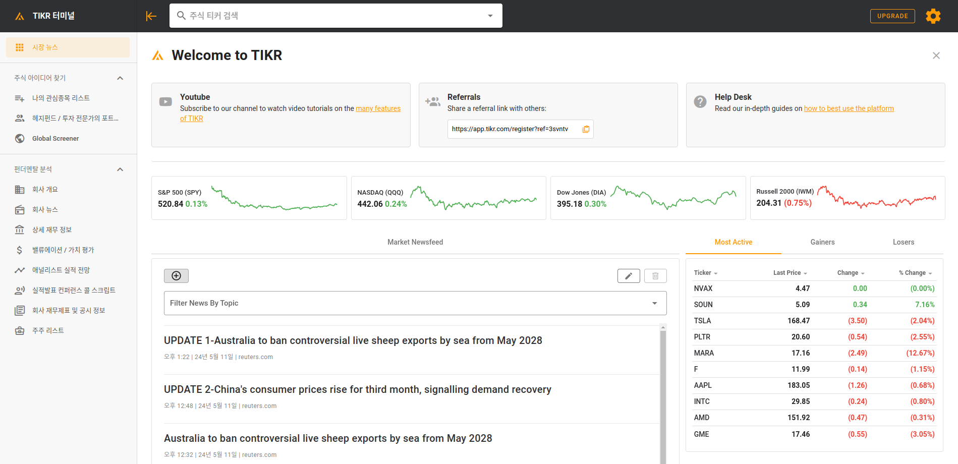 - FINVIZ (스크리너 - 규모/가격/수익률/PER 등 여러 조건들을 이용해서 검색 가능)